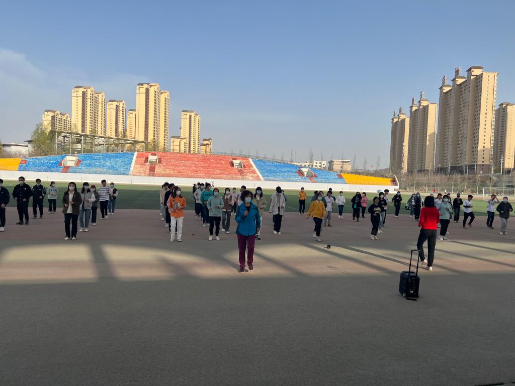 草木蔓发,春山可望,疫情的“倒春寒”却来势汹汹,新一波的疫情使原本活力的校园转为沉静,所有的学生被迫呆在宿舍上网课。在经过两周的线上教学,同学们已按耐不住渴望自由的心。为了在疫情防控期间,加强学生体育锻炼,增强学生身体素质,激发运动热情,提升免疫力,疏解烦躁情绪,3月23日,体育教学部根据学校疫情防控领导小组的安排和部署,凝聚共识、贡献力量,抽调汪百祥、孙胜利、杨博、代海霞、马淑琴五位老师组成体育锻炼指导队伍,奔赴和平校区指导学生在操场开展体育锻炼。