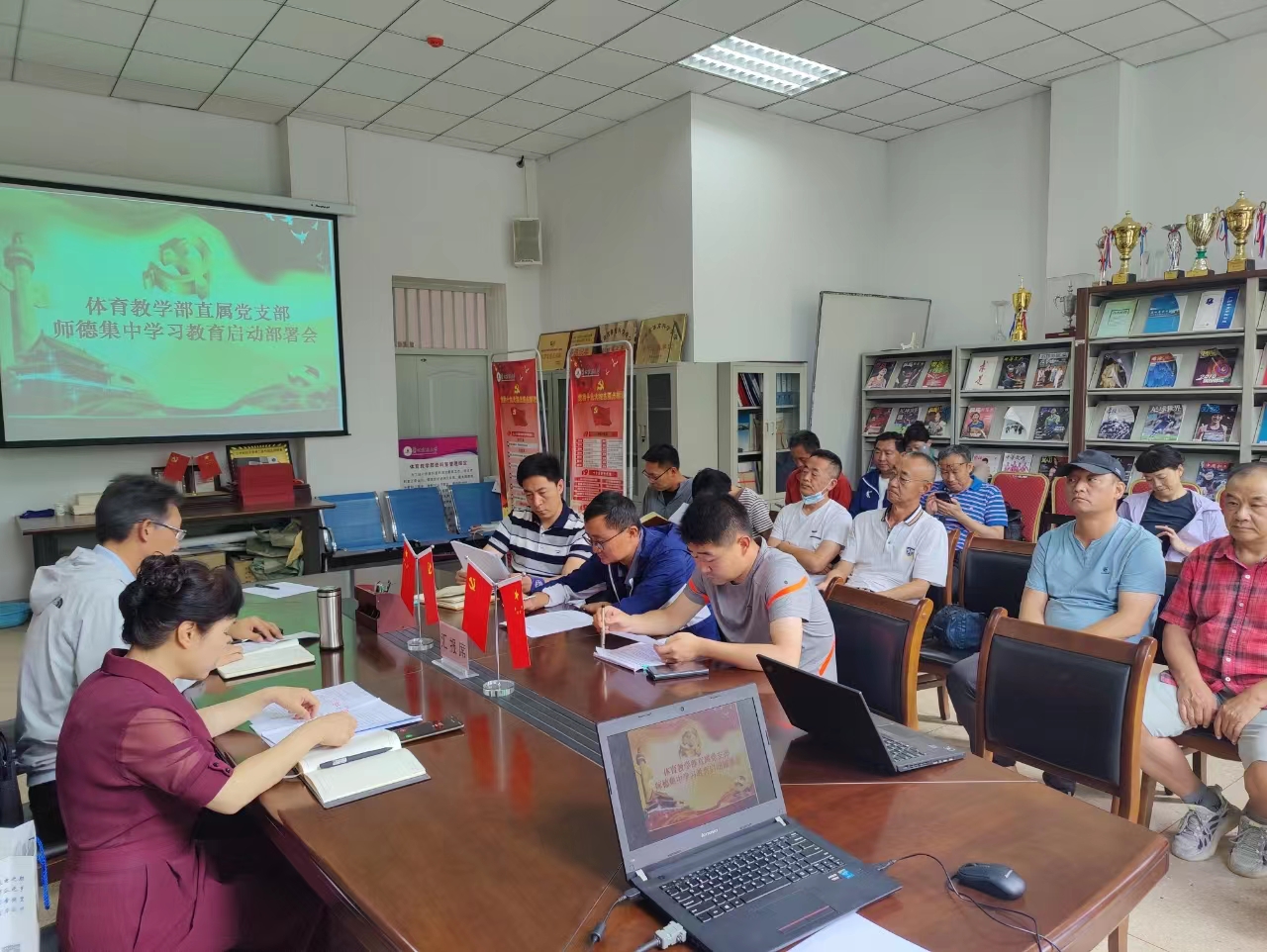 为确保我部全体教职工深入学习贯彻习近平总书记关于教师队伍建设和师德师风建设的重要论述,7月3日下午,体育教学部于知行楼209会议室召开师德集中学习教育启动部署会。会议由师国君主持,部门全体教工参加学习此次培训会。
