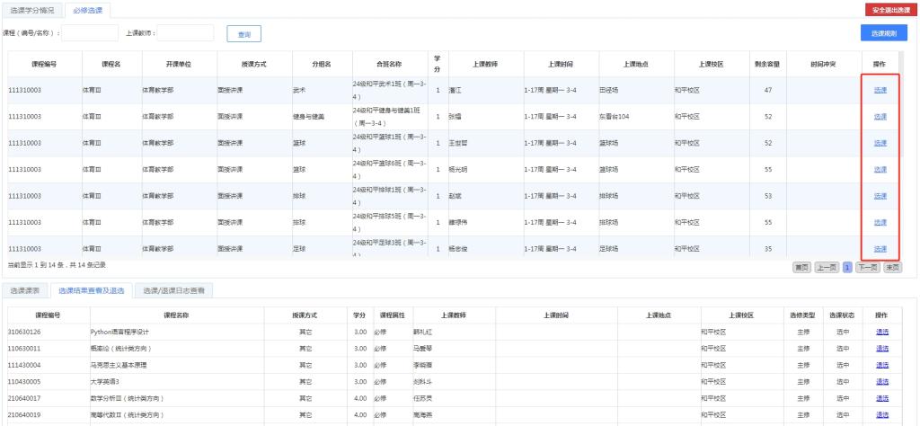 1.2024 级体育选项课原则上选满 35 人方可开班,未选满 35 人的班级由体育教学部根据选课情况进行调整,剩余容量选满后该选项不可再选。