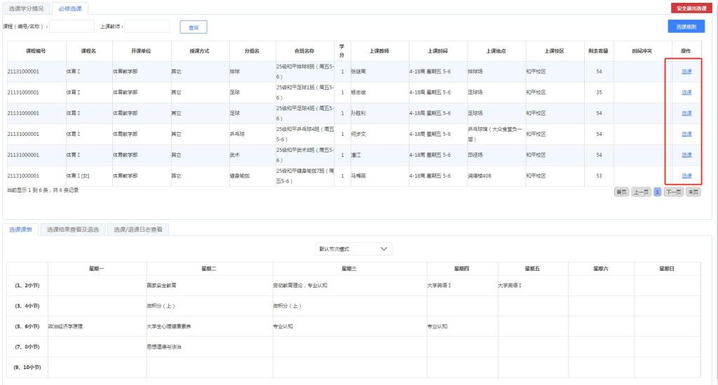 1.2025 级公共体育课各班级班额详见教务管理系统选课中心,满员班级不可再选。未选满 35 人的班级由体育教学部根据选课情况进行调整。未按期在教务系统选课的学生,体育课按未选课处理,学生需在后续学期办理补修。